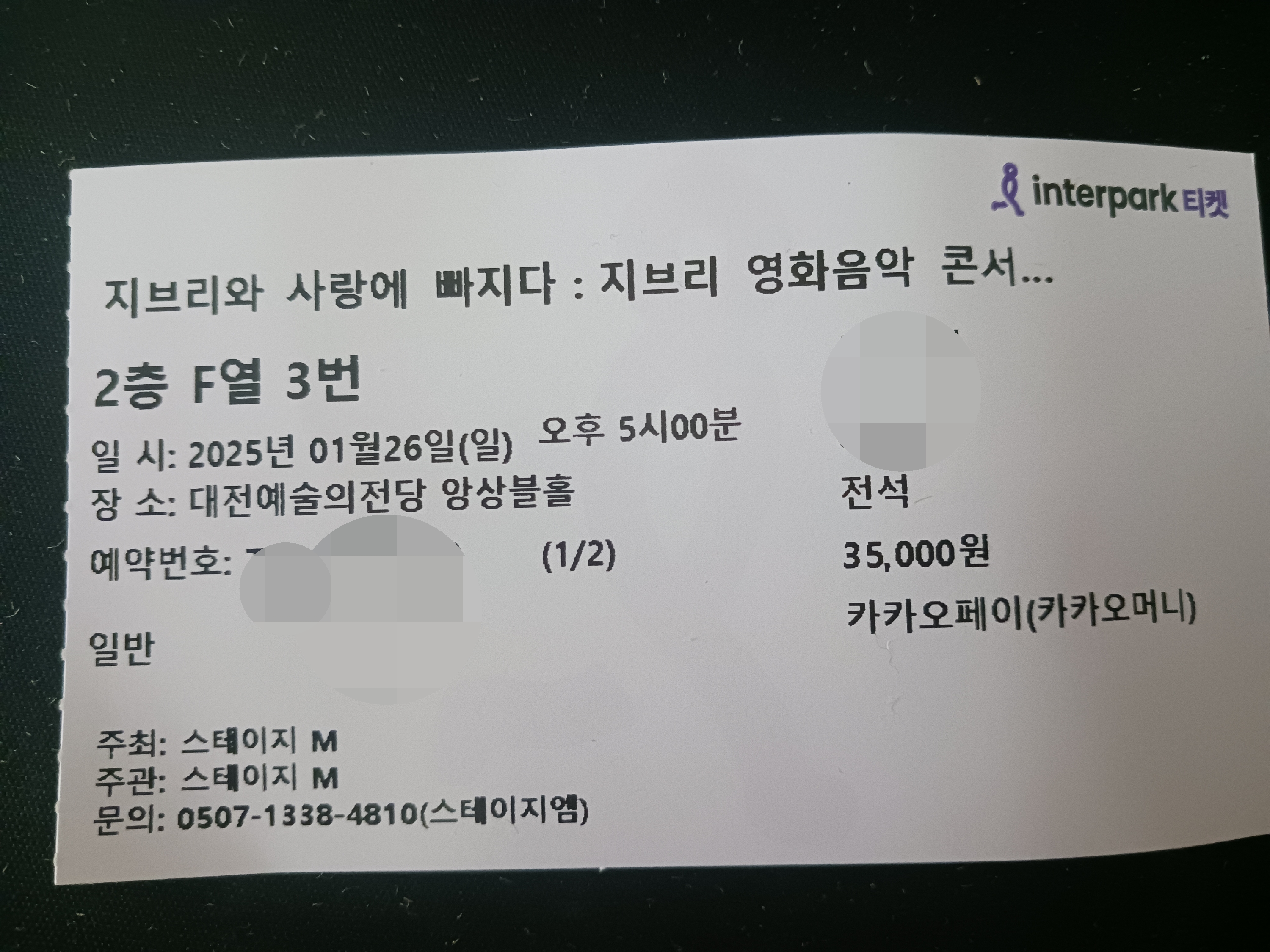 지난 26일 부모님과 함께 대전 예술의전당 앙상블홀에서 열린 지브리 영화음악콘서트에 다녀왔다.