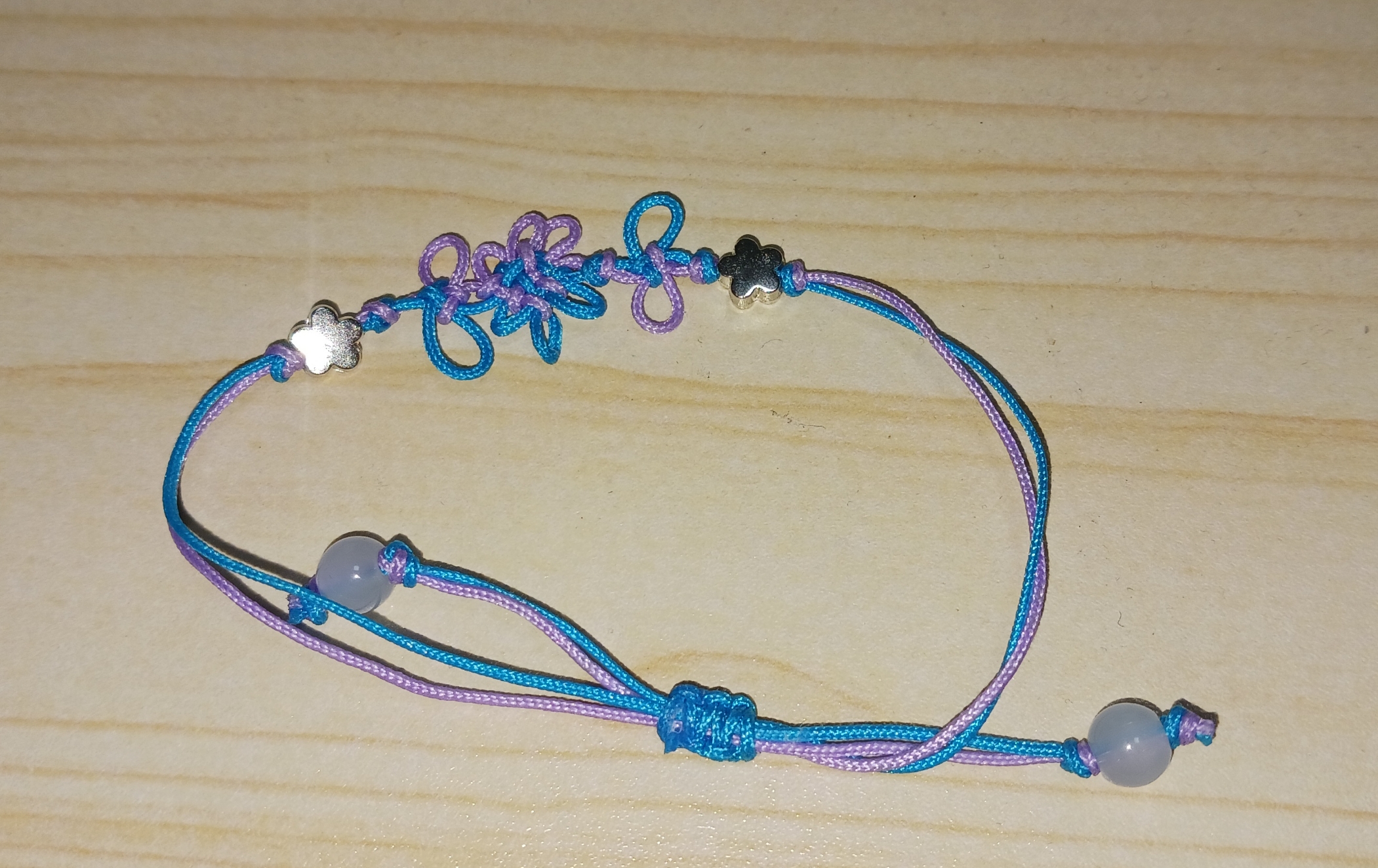 도래매듭, 생쪽매듭, 국화매듭을 이용한 팔찌 (케이팝 데몬 헌터스 애니메이션에서 나온 진우팔찌)를 만들었다. 예전에 사둔 부재료들이 많아서, 어울릴듯 한 구슬을 추가해서 만들어보았다.